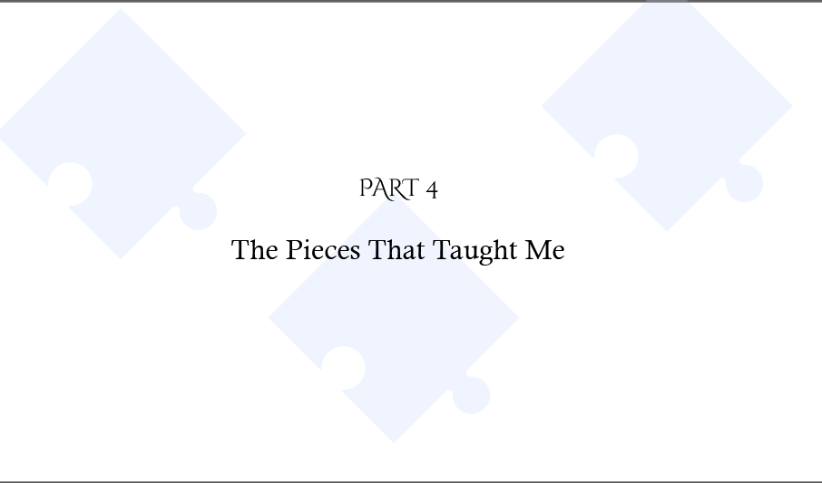Start with missing pieces and misalignments, gradually moving towards a "click." Puzzle pieces became the perfect metaphor for internal alignment—finding where things finally fit.